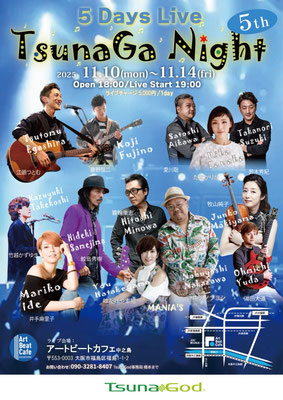 12日 11月 2025 Tsuna Ga Night@大阪 ◆会 場 アートビートカフェ 阪市福島区福島1-1-20 ◆開 演 19::00 ◆出 演 マニアズ (Per)はたけやま裕 (Vo/G)中沢ノブヨシ 鮫島秀樹(Bass Guitar) 箕輪単志(Piano) ◆チケット 無料 ◆お問合せ アートビートカフェ https://cypher.asahi.co.jp/artbeatcafe tagPlaceholderカテゴリ: 20251112ライブ